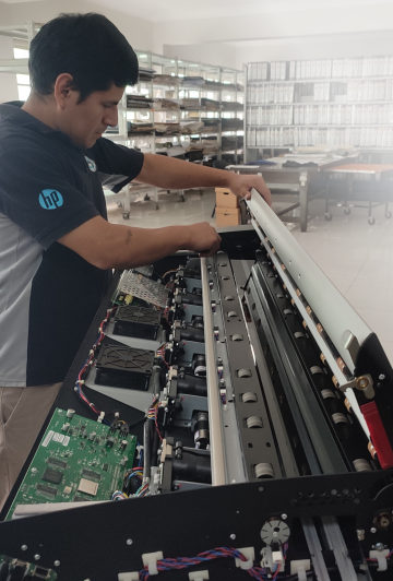 Nos especializamos exclusivamente en equipos plotter HP, contando con un equipo técnico con más de 15 años de experiencia acumulada y múltiples certificaciones de la marca. Esta especialización nos brinda un conocimiento profundo de la arquitectura de los equipos y nos permite identificar con rapidez patrones de falla según modelo, aplicar procedimientos adecuados en cada intervención —desde el diagnóstico hasta las pruebas finales previas a la entrega—, reduciendo riesgos de fallas recurrentes y prolongando la vida útil del equipo.